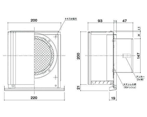 角型フード付ガラリ ステンレス網付シルバー SK-SGK150 新協和