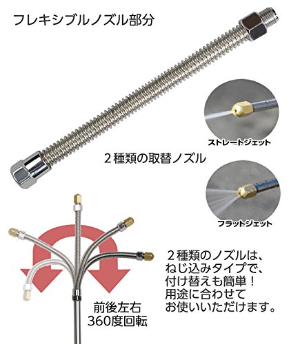 高圧洗浄機のような洗浄パワー!で今お使いのホースのノズルを変えることで、ご家庭のあらゆる場所で大活躍! フレキシブルヘッドで今まで届きにくかった雨どいや、車のルーフもラクラク届きます。