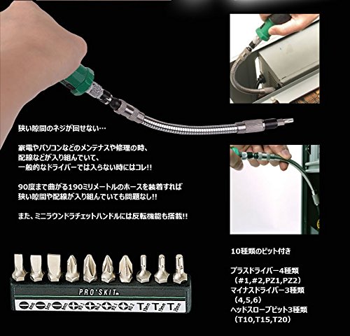 1stモール フレキシブル ドライバー セット 10in1 90度 隙間 ネジ 穴 反転 ラチェット プラス マイナス ビット 10種類 ST-1PK-201