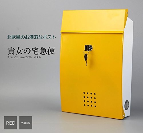 1stモール 【手紙が届くのが楽しみになる】 北欧風 ポスト 貴女の宅急便 大容量 赤い 黄色 投函物 玄関 ガーデニング 家具 インテリア 【イエロー 】 ST-POST1078-YE