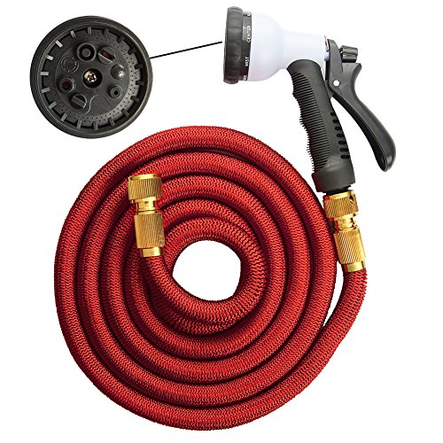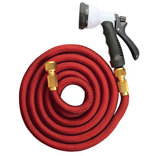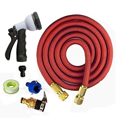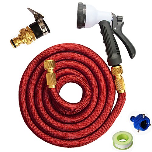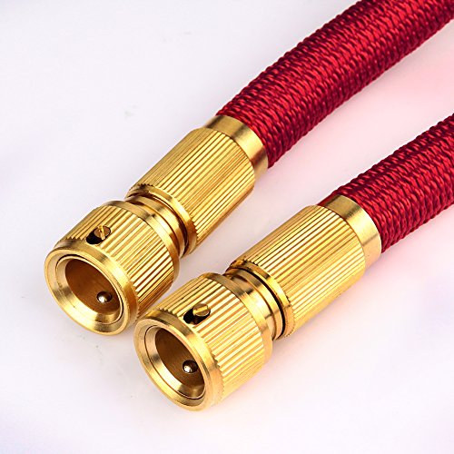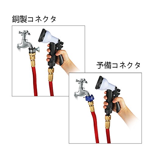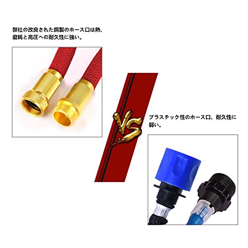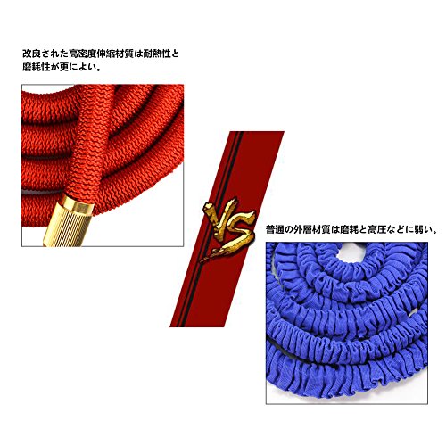 3DWORLD 伸縮ホース 洗車 ガーデニング 水撒きに 銅製コネクタ レッド (5M-15M)