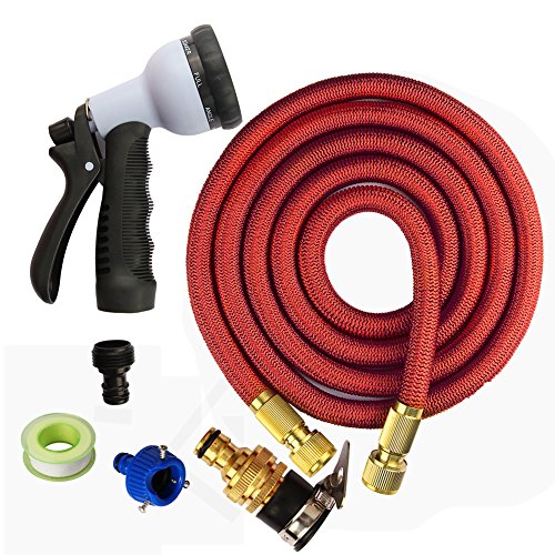 3DWORLD 伸縮ホース 洗車 ガーデニング 水撒きに 銅製コネクタ レッド (10M-30M)