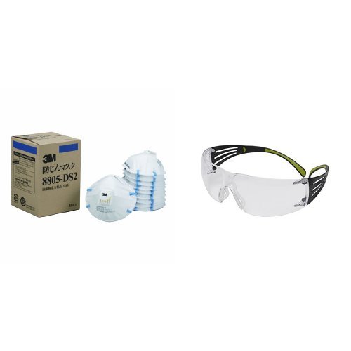 - セット内容:3M 使い捨て防じんマスク排気弁付き10枚 国家検定合格 8805 DS2、3M セキュアフィット クリアレンズ SF401AF