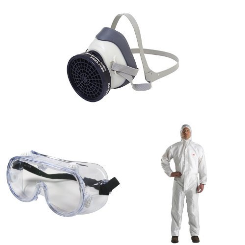 3M 防毒マスク 有機溶剤作業用マスクセット+ゴーグル&防護服付き