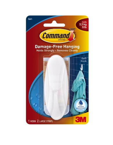 - Command Designer Bath Hook, Large, White, 1-Hook with Water-Resistant Strips (17083B-ES)