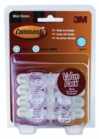 The mounting solution that holds firmly and removes cleanly Leaves no surface damage and are reusable Creates an easy and affordable way to organize and decorate Mini design Each hook holds up to .5 lbs 18 per card Length: 2Width: 4.3Height: 6.3