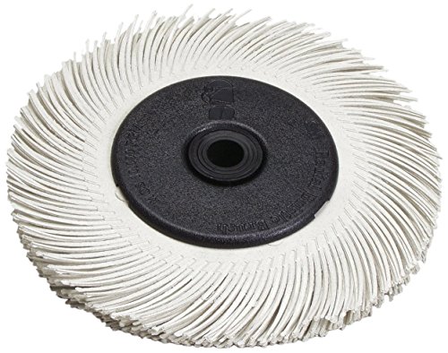 Abrasive mineral: aluminum oxide and Cubitron abrasive grain. Scotch-Brite radial bristle brush replacement disc T-C 120 refill. Durable radial brushes can be used to replace wire brushes. Cleans with minimal pressure. Works on a variety of coatings and is a safe alternative to wire brushes. Abrasive mineral: aluminum oxide and Cubitron abrasive grain. Package includes a universal benchmotor adapter. High cut rate. Flexible. Consistent supply of abrasive. Brush design for greater conformability. White color. 7.62-inches diameter. 120 Grade. 6000 maximum RPM. 1-inches width.