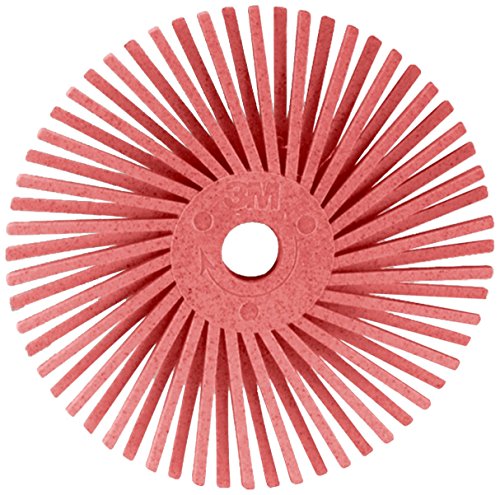 Pink color. 3M Scotch-Brite radial bristle disc bristle. Durable radial plastic disc for deburring or coating removal. Leaves a satin finish. Gang multiple discs to form a brush. Fits portable hand tool or small bench motor. Consistent supply of abrasives. Clean and strips with light pressure. Great for contours and hard-to-reach areas. Converted form: bristle disc. Equipment - machines: die grinders. Grade:pumice. Max RPM: 35000. Size: 9/16-inches diameter. Center hole diameter: 1/16-inches. Pink color. Position: best. Mineral type: ceramic.
