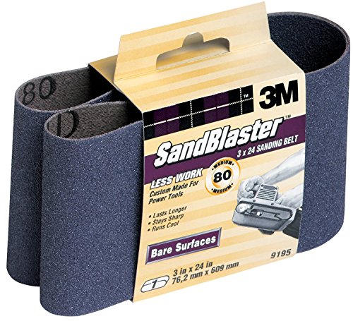 3M Sandblaster, 3" x 24", 80 Grit, Medium Power Sanding Belt, Regalite Industrial Grade Mineral Stays Sharper, Runs Cooler & Lasts Longer, Bi-Directional Splice Does Not Bump Or Nick The Surface & Runs Smoother, Purple Belt, Use With Standard 3" x 24" Belt Sander.