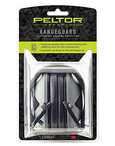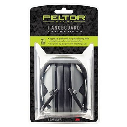 Peltor Sport RangeGuard Electronic Hearing Protector suppresses gunshot noise to protect hearing while amplifying voices for clear communication. Ideal for range and hunting use. Noise reduction rating (NRR) equal to 21 decibels. Low profile cup design works with shotguns & rifles. Single, external battery door. Adjustable padded headband. Durable recessed microphones. Single on/off and volume control. 4-hour auto shut off to preserve battery life. 3.5mm audio input jack for MP3 & 2-way radio compatibility. Runs on 2AAA batteries (not included).