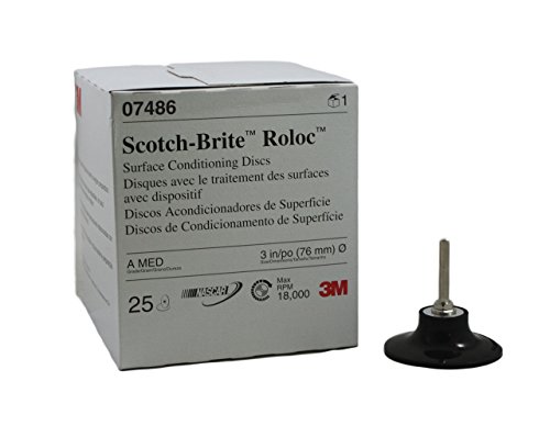 3M Scotch-Brite Roloc Maroon Surface Conditioning Disc is designed to quickly remove cut cork or gasket materials prior to the assembling of power train components. It is ideal for cleaning light oxidation and can be used on a wide variety of surfaces including engine blocks, heads, valve covers as well as transmission housing.