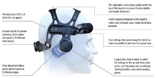 - Helmet helps provide protection from ultraviolet (UV) and infrared (IR) radiation