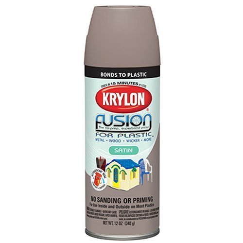 No sanding or priming needed. Bonds with resin structure of plastic and PVC items. Dries in 15 minutes or less. Dries to a hard, satin finish. Fusion, 12 OZ, Satin Khaki, Spray Paint, For Plastic Surfaces, Super Bond, Satin Finish, No Sanding Or Priming Needed, Fusion Actually Bonds With The Resin Structure Of Household & Commercial Items Made From Plastic, PVC, Or Nylon, Dries In 15 Minutes Or Less To A Hard Satin Finish, E-Z Touch Adjustable Fan Spray Tip.