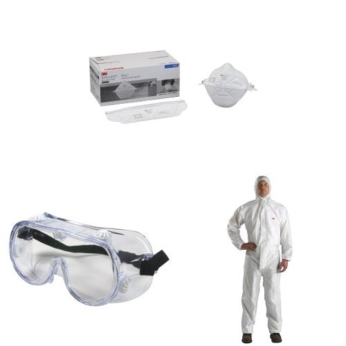 - セット内容:3M Vフレックス 防じんマスク 9105J-DS2 レギュラーサイズ 20枚入り 国家検定合格品 1箱、保護ゴーグル 334AF 40661 1個、3M 化学防護服 4520 Mサイズ 1着