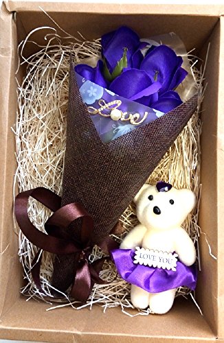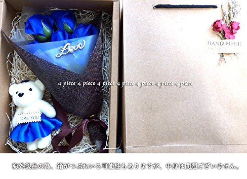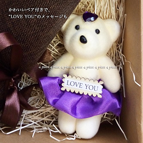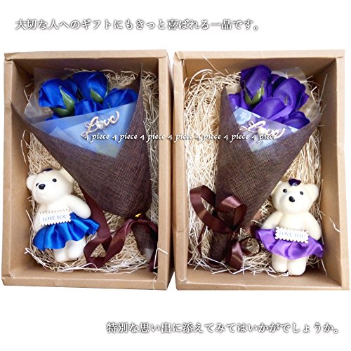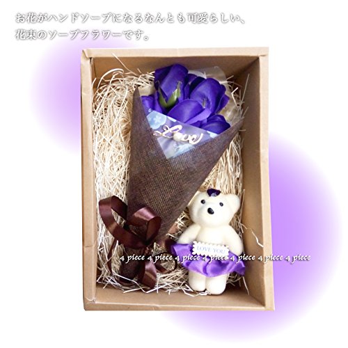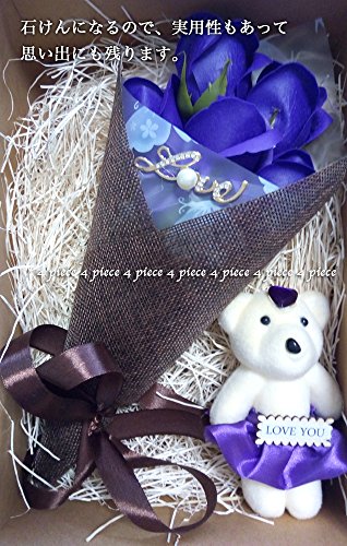 (よんピース)4 piece ソープ フラワー 石けん 花束 おしゃれ かわいい ギフト (パープル(ベア付))
