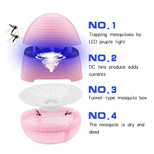 - LEDライトが6つ付き、光で蚊や虫などを誘い、受け皿に吸い込むことができ、薬品・薬剤などが不要で匂いや煙を出さずに害虫除去できる蚊取り器です。魅力的なデザインは、任意の装飾に最適です。
