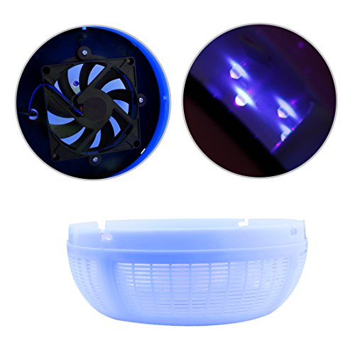 - LEDライトが6つ付き、光で蚊や虫などを誘い、受け皿に吸い込むことができ、薬品・薬剤などが不要で匂いや煙を出さずに害虫除去できる蚊取り器です。魅力的なデザインは、任意の装飾に最適です。