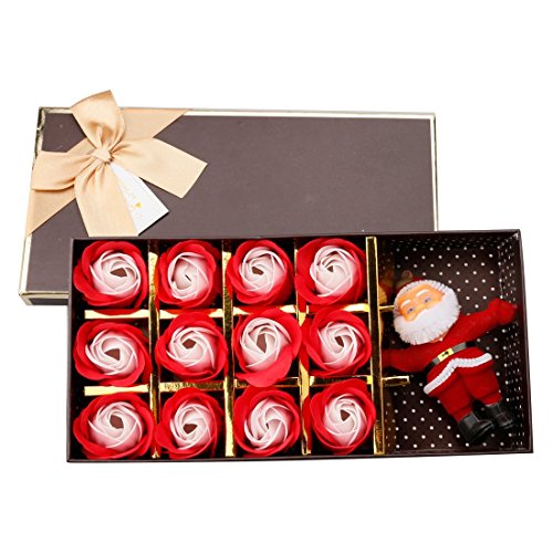 A-SZCXTOP 12PCS 石鹸花 シャボン花 ソープローズ ソープバラ ソープフラワー サンタクロース人形付 クリスマス バレンタインデーのプレゼント 手作り花 ギフトボックス