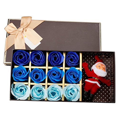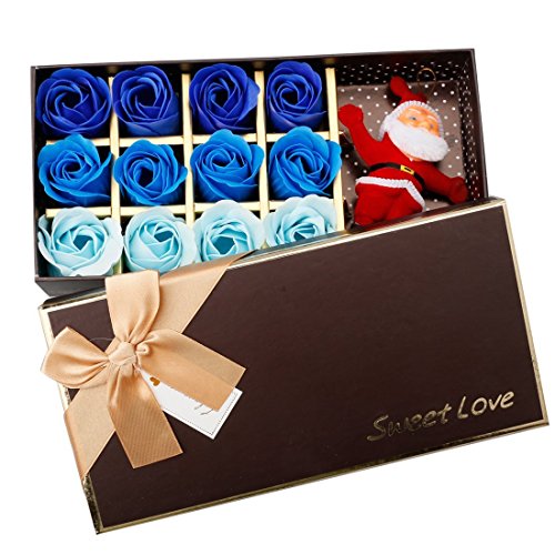 A-SZCXTOP ソープフラワー メリークリスマス 造花 フラワーソープ 12個セット 石鹸 バラ ギフトボックスを付き サンタクロース人形 ぬいぐるみ ローズ プレゼント
