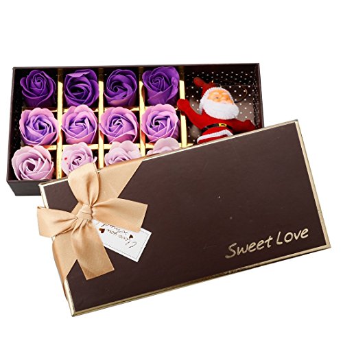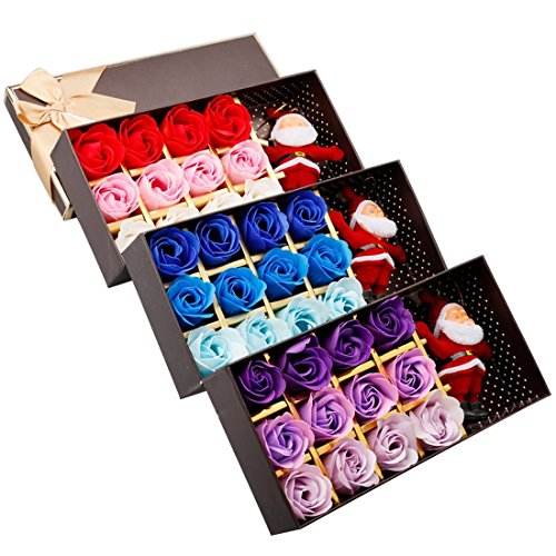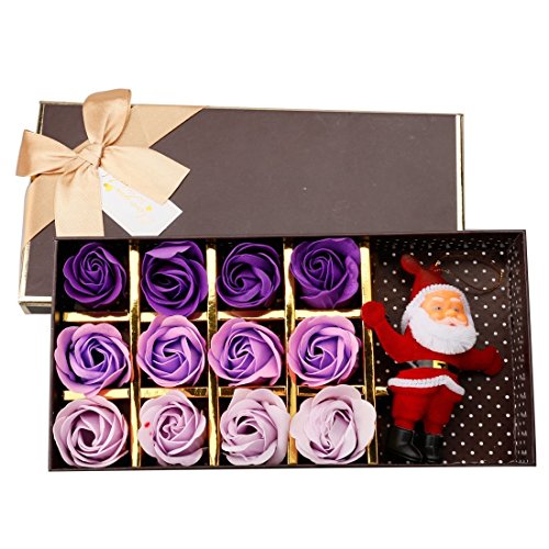 A-SZCXTOP ソープフラワー メリークリスマス 造花 フラワーソープ 12個セット 石鹸 バラ ギフトボックスを付き サンタクロース人形 ぬいぐるみ ローズ プレゼント