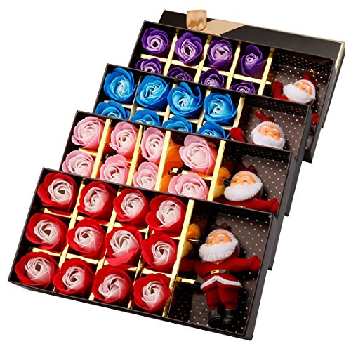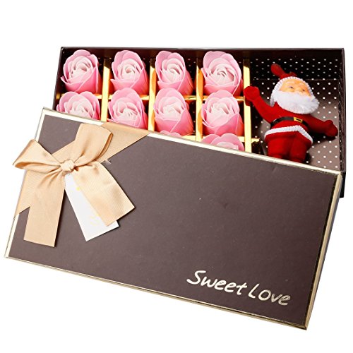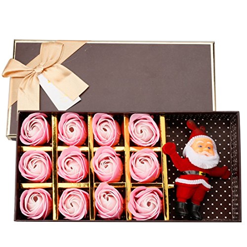 A-SZCXTOP ソープフラワー メリークリスマス 造花 フラワーソープ 12個セット 石鹸 バラ ギフトボックスを付き サンタクロース人形 ぬいぐるみ ローズ プレゼント グラデーション色