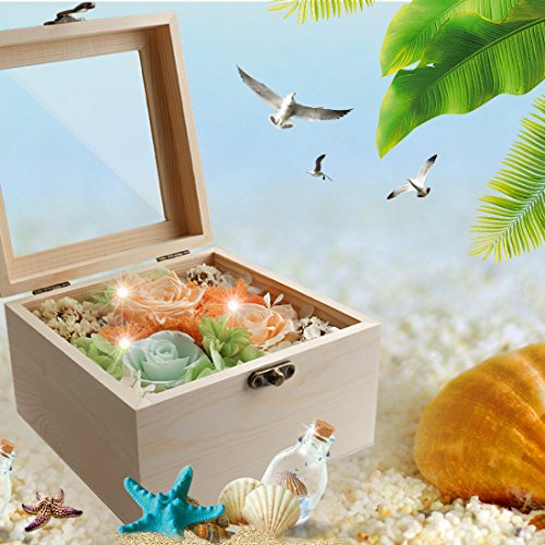 a-szcxtop Preserved新鮮で花高級木製ボックスNever withered RealローズEternal , Great贈り物forバレンタインの日Thanks Giving Day and母の日 ベージュ 13158