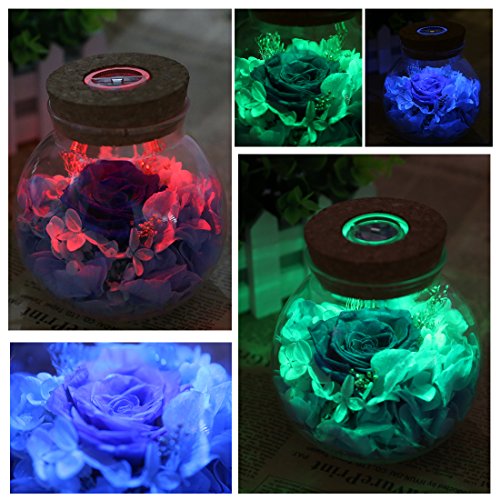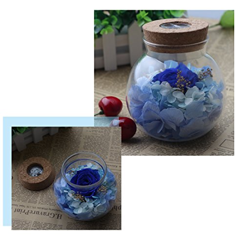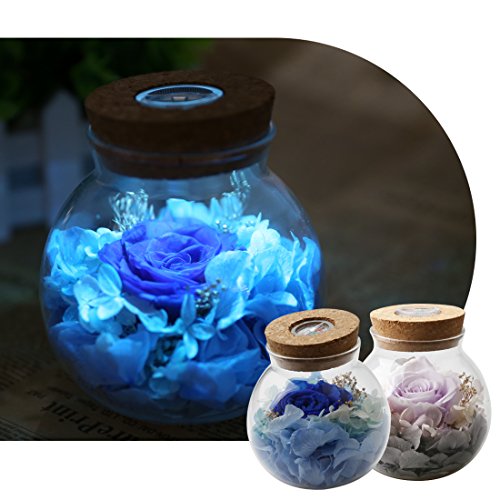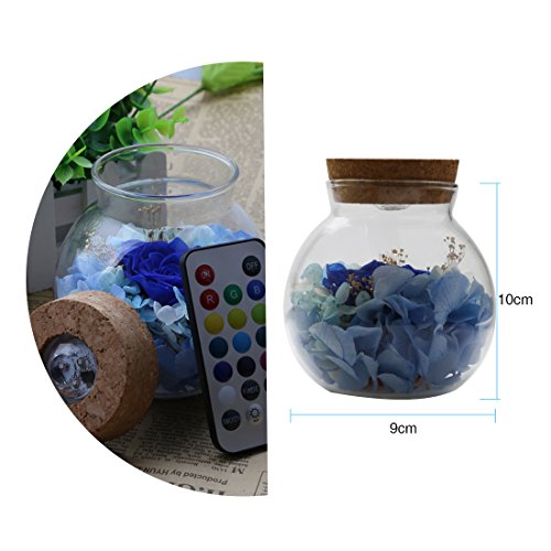 a-szcxtop Preserved Fresh Flower on Wishボトルコントローラ付き、Best Wishesバレンタインの日のギフト記念日、誕生日、with 7色LEDライト ブルー 13136