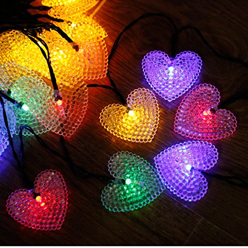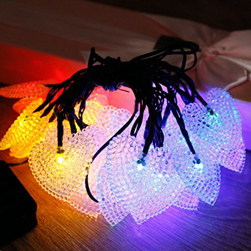 A-szcxtop ソーラーストリングライト ハート形 LEDライト イルミネーション クリスマス パーティー 防水 省エネ 環境に優しい カラフル 30LED