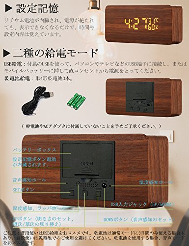 - 【2種類の給電方法】USB/乾電池 電池は使用できますが、1日から3日位しか電池が持ちません。電池使用の場合は充電池の使用をお勧めします。USB給電(家庭用コンセントから給電)を基本的には使用してください。乾電池をご使用する場合、音声モードにしてください(省エネのため)。