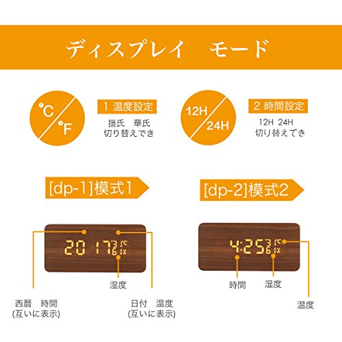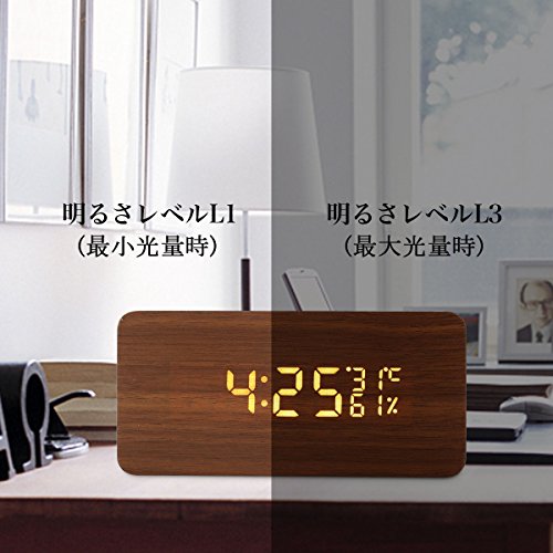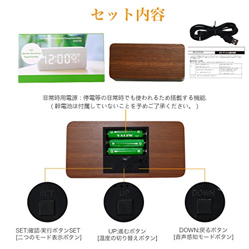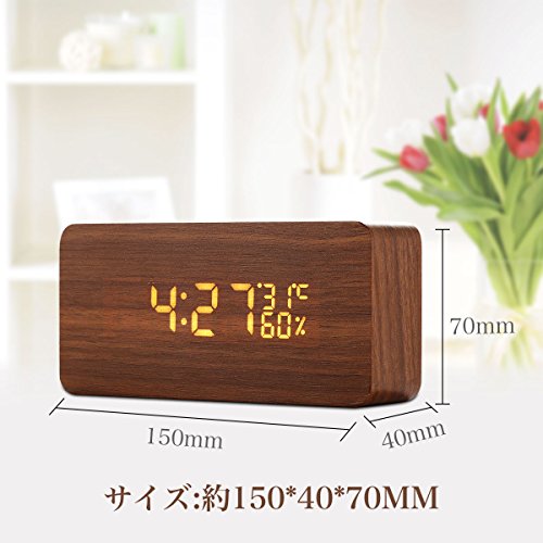 Acetek 目覚まし時計 置時計 デジタル 多機能 大音量 LED 木目 おしゃれ アラーム カレンダー 温度湿度 音声感知 卓上寝室台所用 プレゼント(ブラウン)