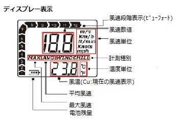 - 【測定単位】:m/s, km/h, ft/min, Knot, mile/h 【測定範囲】:風速 m/s:0~30 温度 -10℃ ~ +45℃