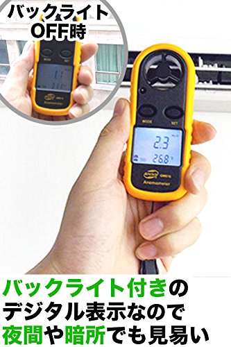 - 簡単操作で風速が計れ、バックライト搭載で、暗所でも使えるデジタル風速計