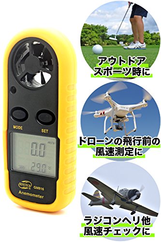 - 【用途】ドローンの飛行前の風速測定に。 その他…アウトドア、スポーツ、扇風機、エアコンなどのコンディション確認などに
