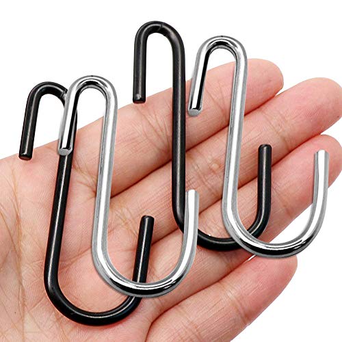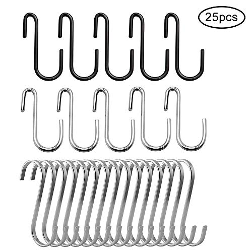 25 pcs S型フックfor Hanging植物、クローゼットロッド、キッチンポットパン、Afunta Heavy Dutyメタルハンガーオーガナイザーユーティリティフックforキーカップタオルバッグガーデンアウトドア、2 types-ブラック、シルバー