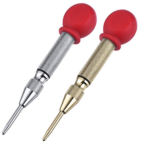 AFUNTA 2 PCSハイスピードセンターパンチ、木材、金属、プラスチック、車窓用センターホールパンチマーカースクライバークッションキャップと調整可能なインパクトを備えたパンチャーブレーカーツール - 金、銀