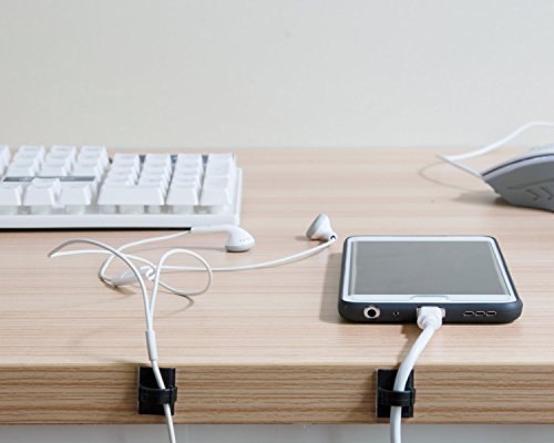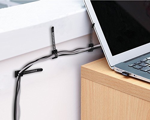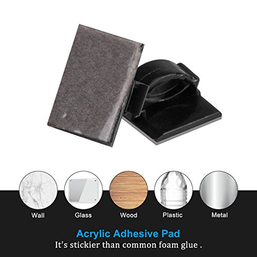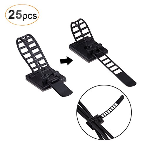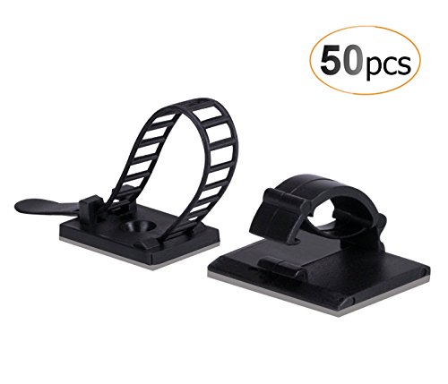 AGPtek 50ピース自己粘着ケーブルオーガナイザー、25個調節可能なケーブルネクタイと25個ケーブルクリップ、ブラック