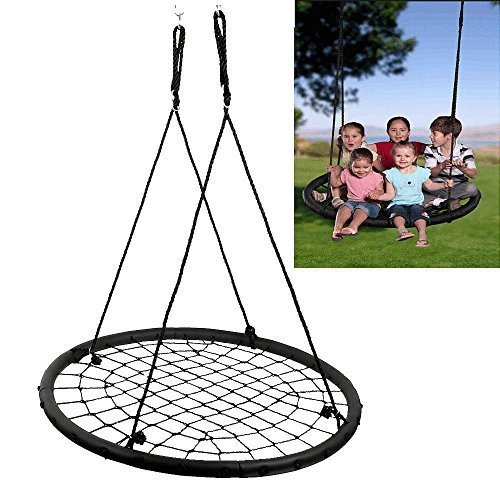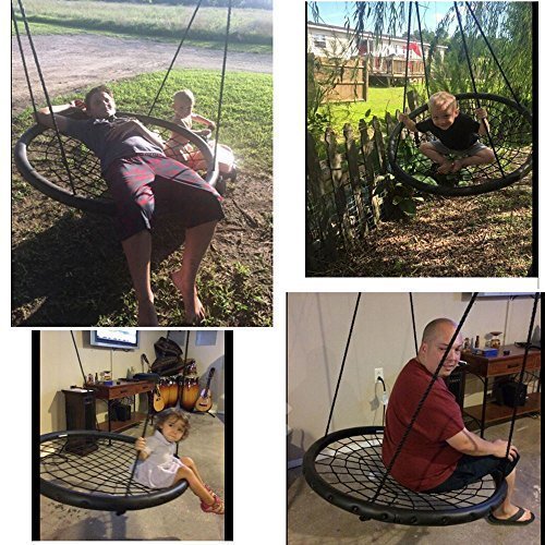 このプラットフォームスイングは友人と付き合って最適な場所です。頑丈なロープとEVAパッド入りのスチールフレームに4つのピースを1メートル直径ラウンド形状にプラットフォームを提供します。、裏庭に独自の円形ツリースイングのさまざまな位置に配置することを子供は、感激のお子様のお気に入りの遊び場タイヤのスイングを使用。