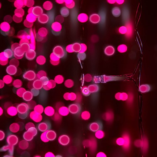 【PSE認証済み】AGPtek 3MX3M/300LEDLEDイルミネーションライト 防水国際基準IP44 8種類の点滅パターンカーテンライト 複数連結可 コントローラ付き 日本語取扱書付き クリスマスパーティー、学園祭、告白、結婚式などイベント大活躍 (ピンク)