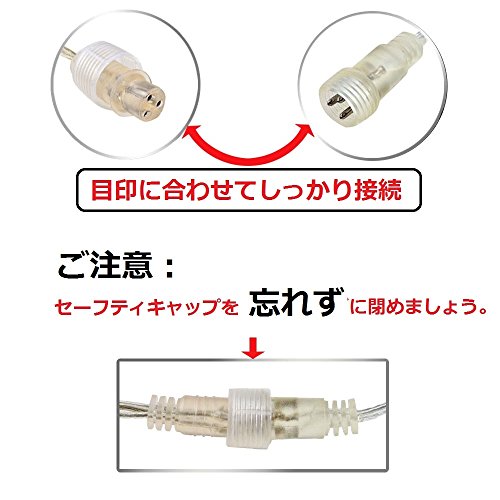 LED部分は防滴加工ですが、コントローラー部分、プラグ部分は防滴加工されていませんので、取り扱いにはご注意下さい。尚、水中での使用は危険ですので、絶対におやめ下さい。大雨や雪、雹が降った天気なら、屋外で使用しないようにください。