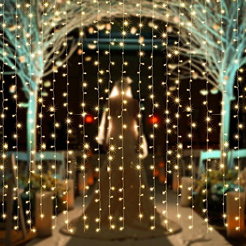 【水中にも適用】AGPtEK 3M×3M/300 LEDカーテンライト USB給電式 8 点滅パターン結婚式、学園祭、誕生会、ハロウィーン、クリスマスパーティー、バレンタインデー、記念日などイベント大活躍 防水国際基準防水IP67 LEDイルミネーションライト コントローラ付き 日本語取扱説明書 (ウォームホワイト)