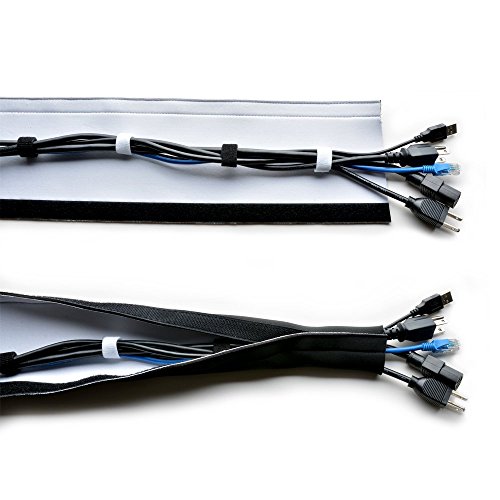 - Cable sleeve Length: 59inch*5.3inch, made of elastic neoprene material with velcro closure. Cuttable and expandable by yourself, allows for multiple cables and flexibility.