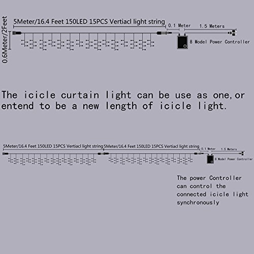 - Extendable Design: The icicle light is composed of the controller and main icicle light two parts. multiple icicle light after connected can be control by the same one controller synchronously, so you can decide the length of the icicle light according to your need.