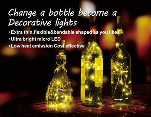 本製品はワインボトルコルク型LEDライトです。 コルク型本体LEDライトは様々なボトルが適用できます、例えば、飲みきりのワイ ンボトルとか、ビールの空き瓶とか、サイダーびんとか、口径が1.5CMから2.5CMの 瓶の口が適用できます。ゴムような色、ワインのせんような形で、違和感がありま せん。 使用する場合、ボトル中で星が散らばっているように、とても綺麗です。ボトルの 中の水があるでも問題ないです。銅線ワイヤーが防水の上、容易に形を変えられます、使用簡単になります。銅線ワイヤーの長さは 70CMがあります。 スイートな雰囲気を作り出すにはもっとも効果的なアイテムです。空き瓶の再利用なのでエコ的。瓶を捨てることなく、目を引く鮮やかな光に変える素敵なアイテムです。