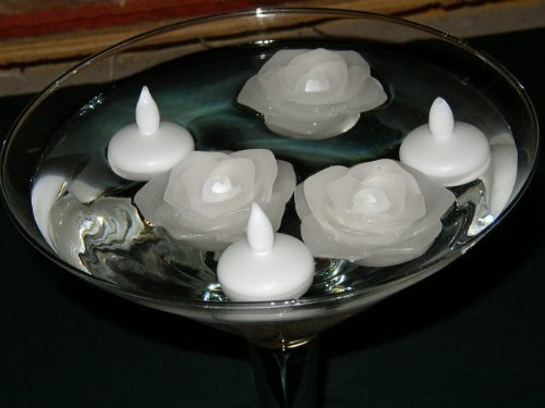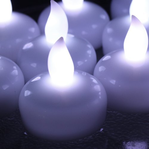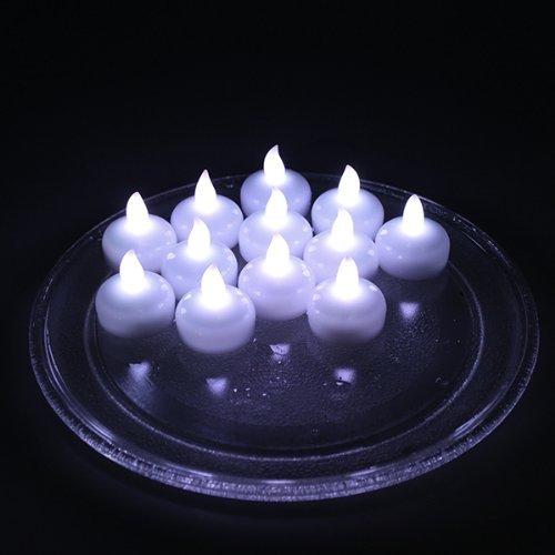 - Set of 12 Floating Tealight size LED candles, realistic light.