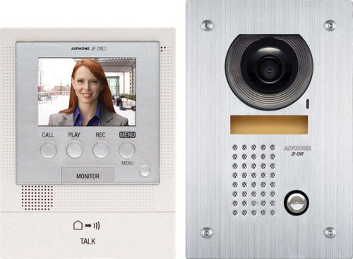 - Aiphone JFS-2AEDF Audio/Video Intercom System with Flush-Mount Door Station with Stainless Steel Faceplate for Single Door, Accepts an Additional Door Station and Up to Two Sub-Master Stations