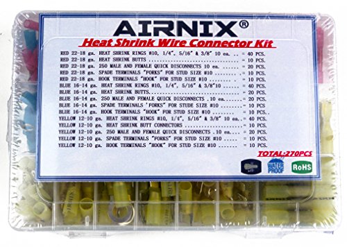 270pcs熱収縮ワイヤコネクタ電気端子キット、防水自動車Marineセット、リングSpade "フォーク"クイック切断Butts &フック