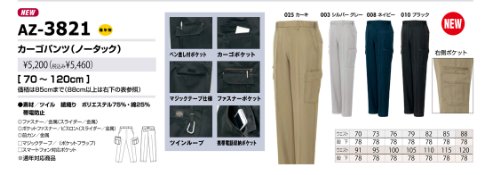 AITOZ アジトプロフェッショナル カーゴパンツ(ノータック) 【通年物/帯電防止】 #AZ-3821 ネイビー 120