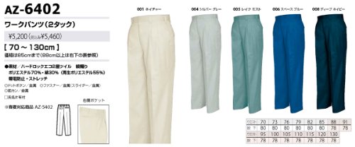 AITOZ(アイトス) #AZ-6402 ワークパンツ(2タック)【秋冬】 ストレッチ・帯電防止 シルバーグレー 100