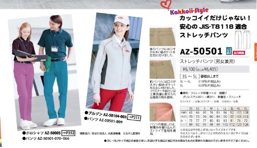 ストレッチ機能が付いた導電糸入り素材でJIS-T8118適合、パターンにこだわりのあるパンツです。