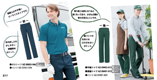 - ◆後ろ股上は前に深くなっており、かがんだ際に背中が見えにくい◆後パンツの左右には口寸が大きいポケット
